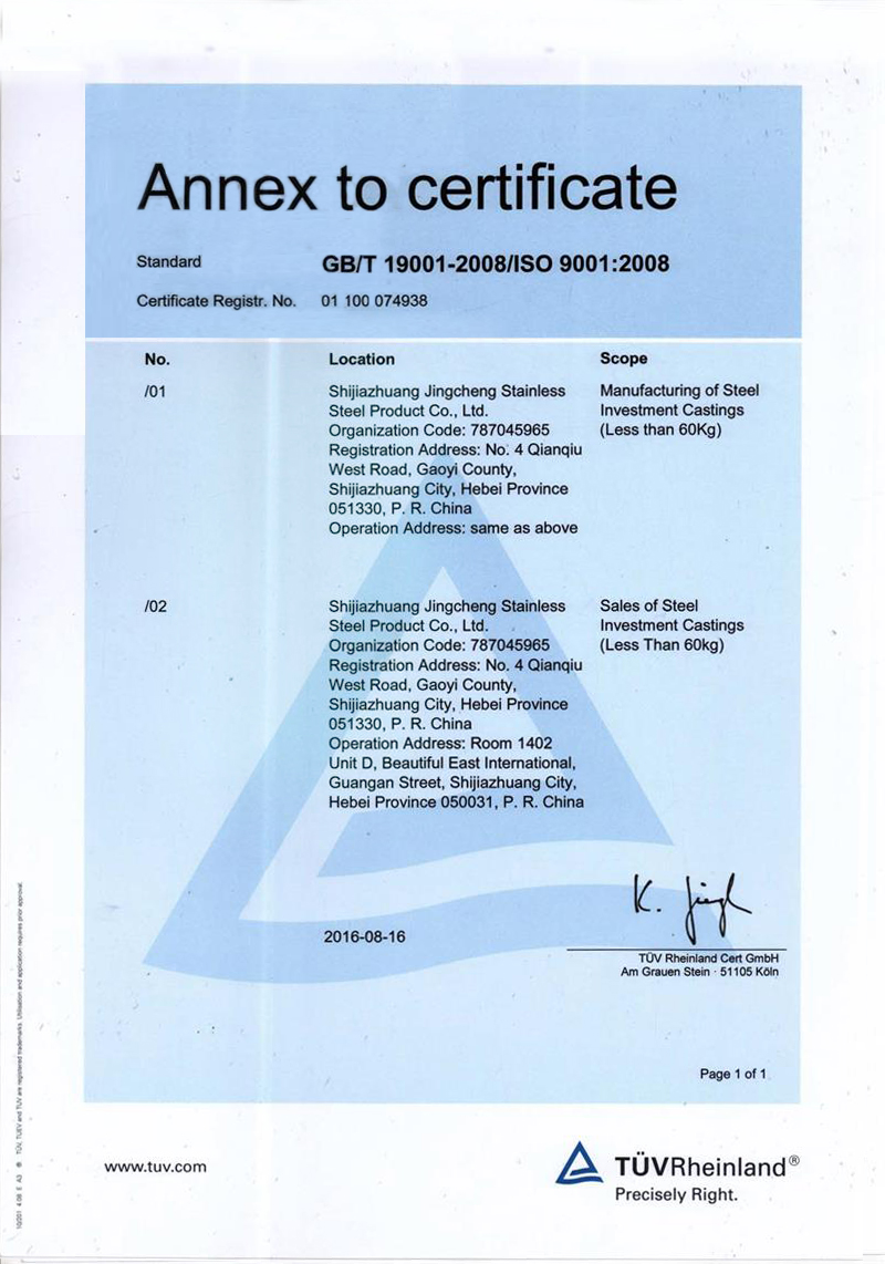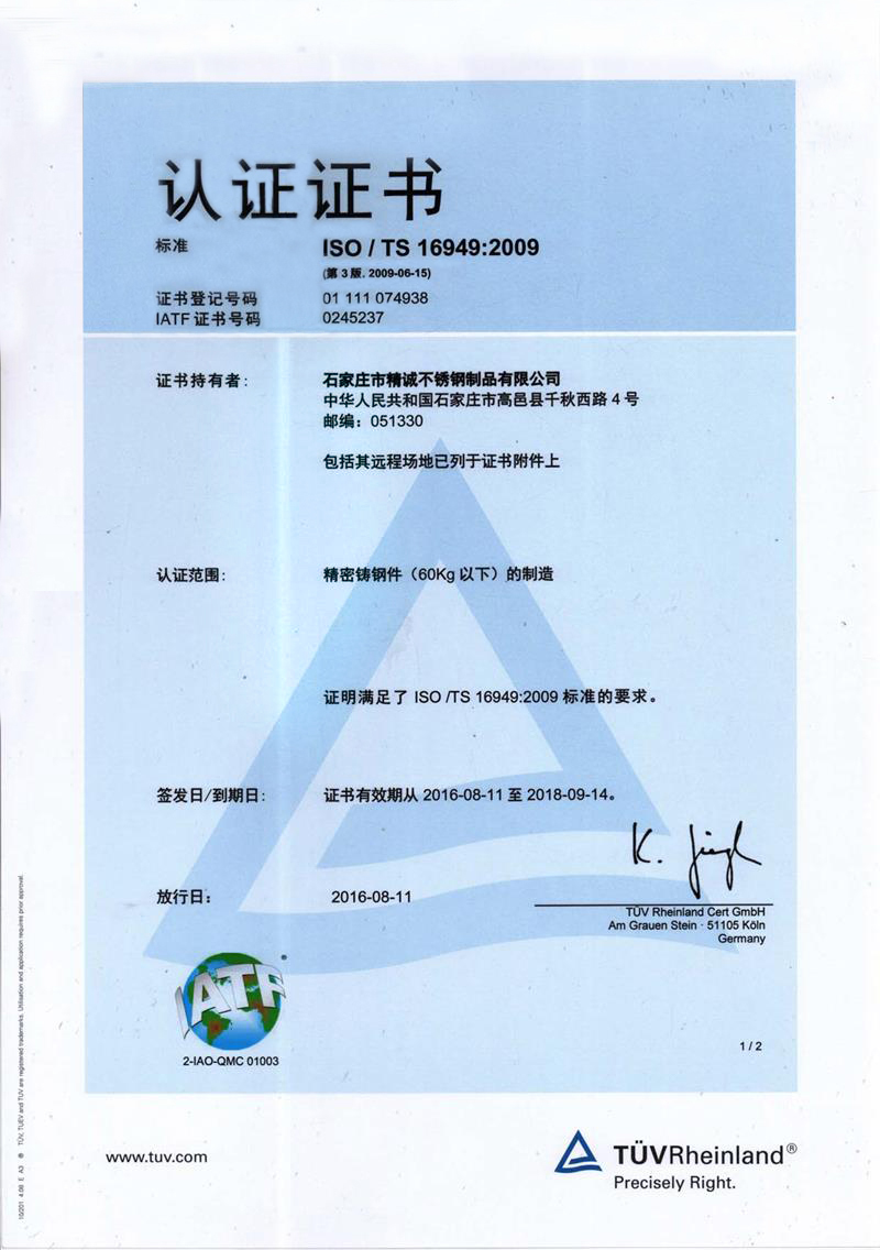 石家莊市精誠不銹鋼制品有限公司,是一家從事專業(yè)精密鑄造的企業(yè)。主要生產(chǎn)不銹鋼、合金鋼、低碳鋼及各種特種合金材質的精密鑄件及加工產(chǎn)品。